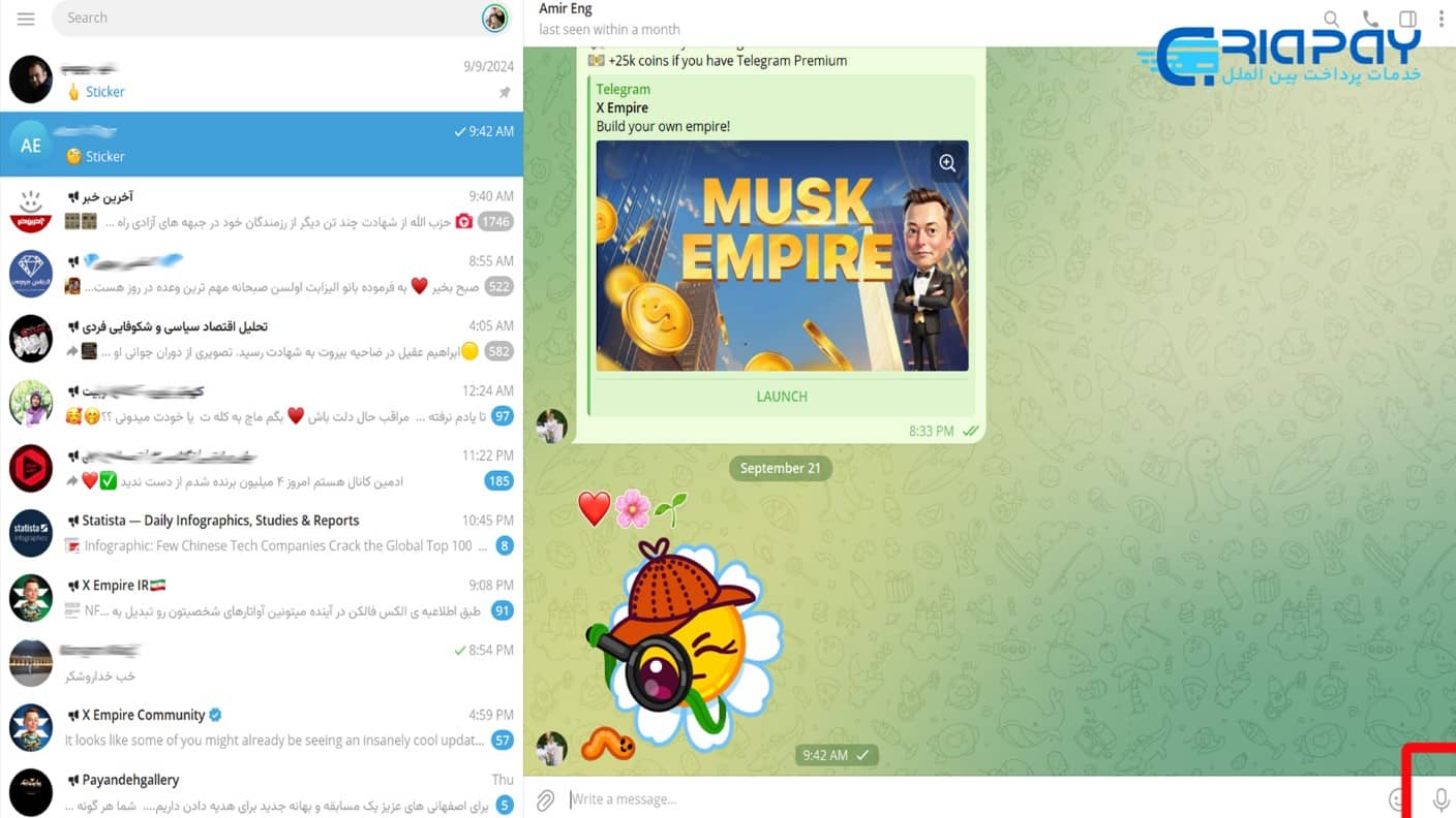 - برنامه تلگرام را در دسکتاپ خود باز کرده و وارد صفحه چت مورد نظر شوید.