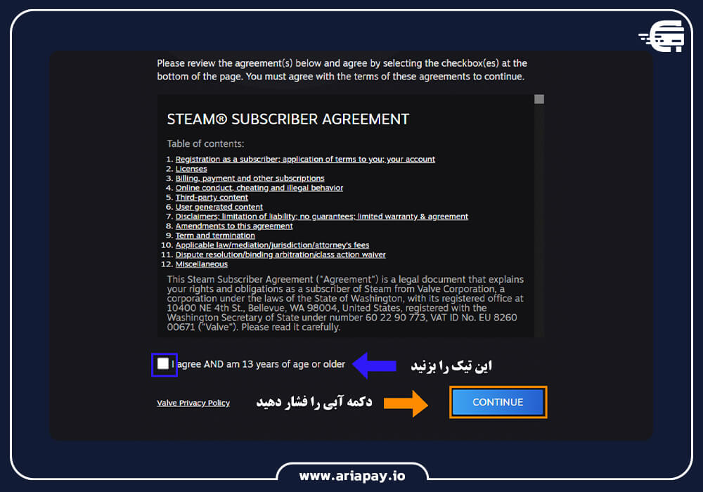 - ضمنا محدودیتهای سنی استیم را رعایت کنید؛ لذا برای ایجاد حساب استیم باید دارای حداقل 13 سال سن باشید.